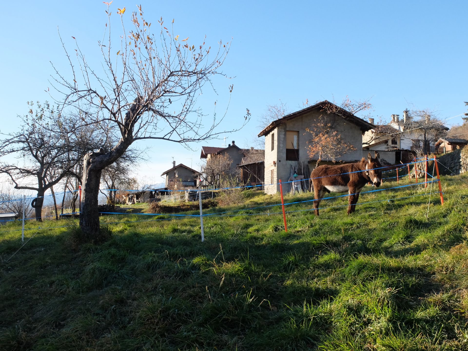 Percorrendo la strada comunale si vedono solo un paio di case, ma il nucleo del villaggio di Ravet è appena più sotto, che si sporge sulla valle centrale e gode di un panorama meraviglioso.