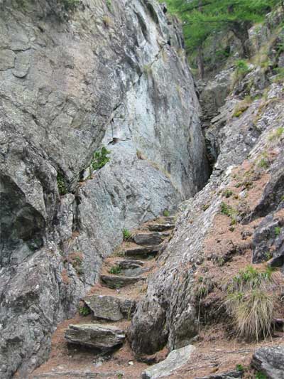 Si imbocca il sentiero nr 6, a fianco del Museo dedicato all'Abbé Trèves, seguendo le solite paline gialle.