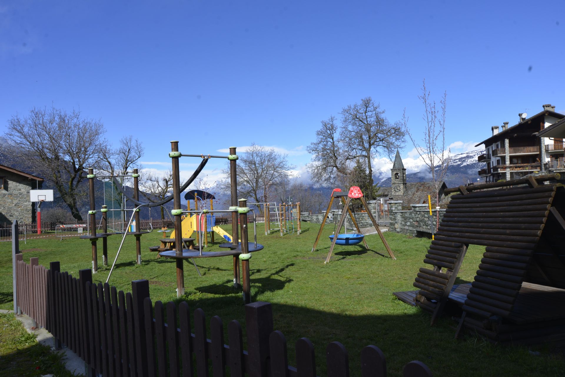 Di fronte all'edificio giallo sede della scuola e del Comune, è disponibile un'area attrezzata con molti giochi coloratissimi adatti ai bambini. Altalene, scivoli e via dicendo.