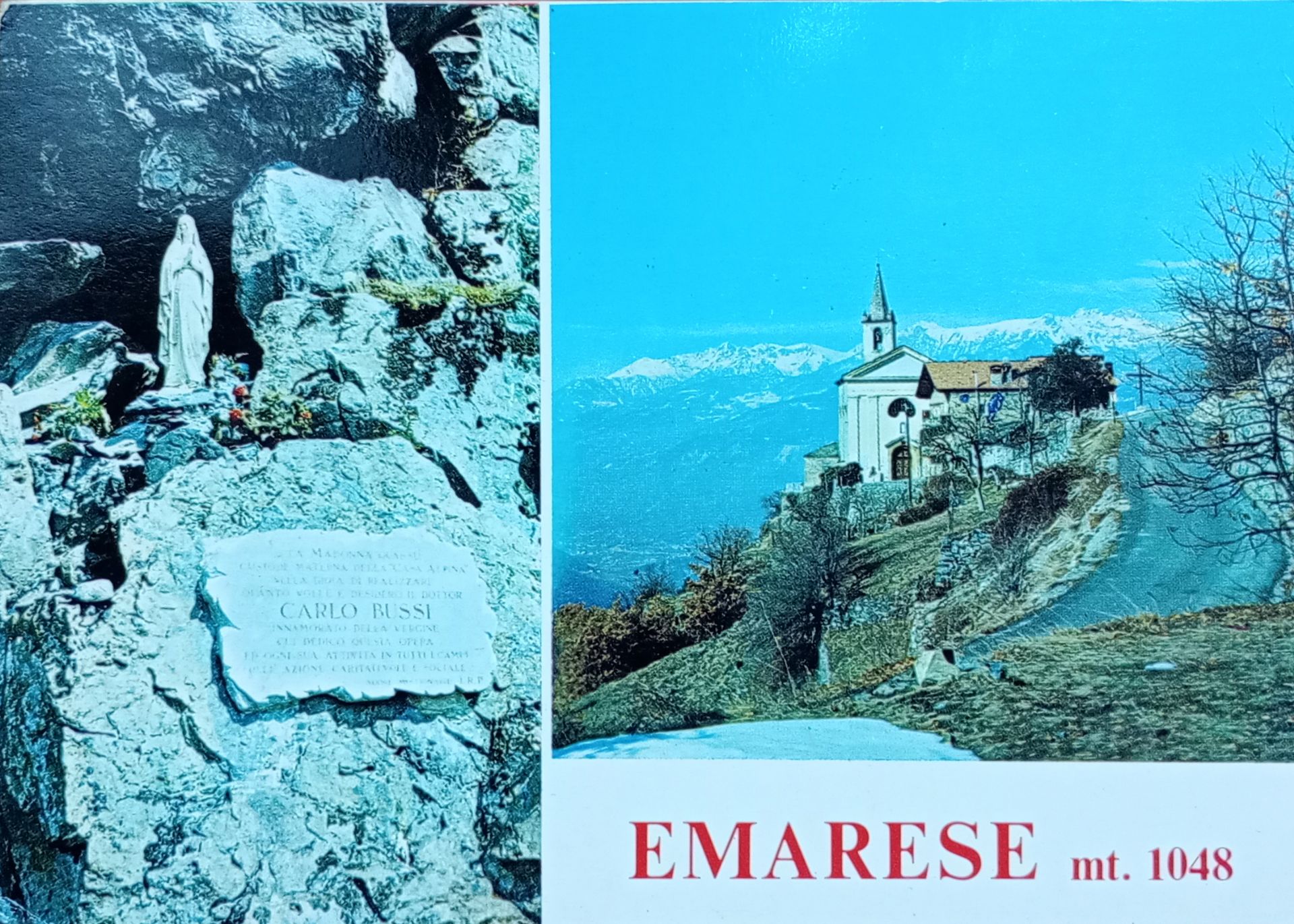 Carlo ha un'amica di Novara che da piccola passava le vacanze nel Soggiorno Alpino gestito dalle Suore Missionarie dell'Immacolata Regina della Pace a Emarese. Così fa dono a Carlo di alcune cartoline risalenti agli anni a cavallo del 1980 che ritraggono il nostro paese...