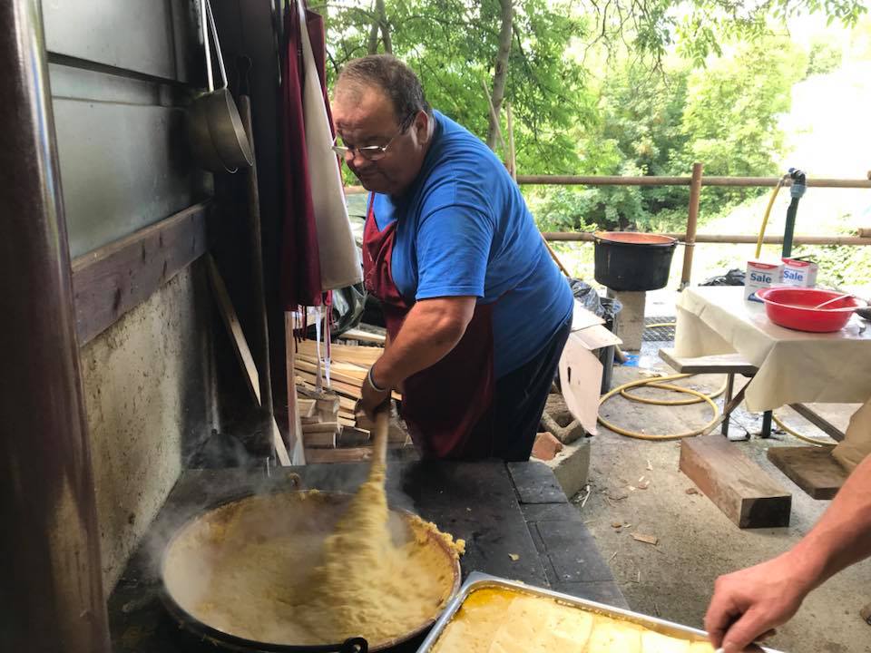 Abbiamo scelto una foto a cui siamo profondamente legati: al paiolo c'è Renatone, una colonna della nostra ProLoco purtroppo scomparso prematuramente