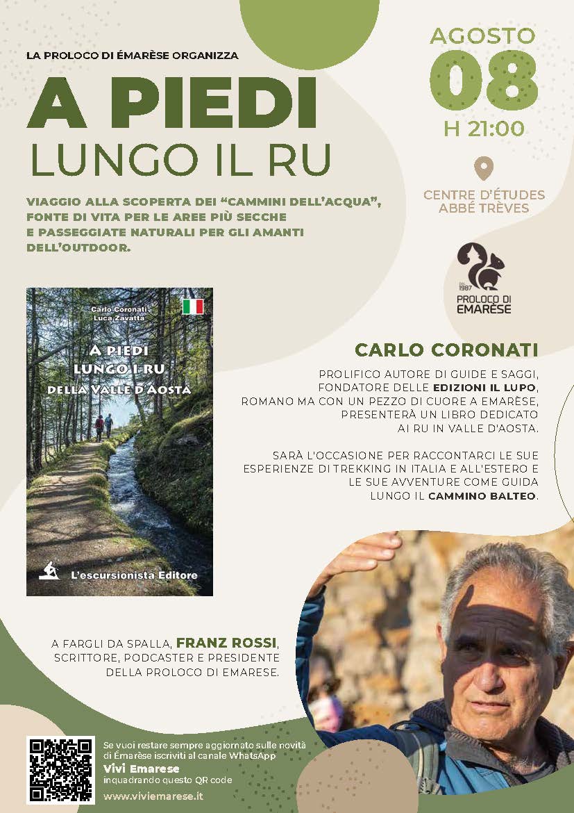 Carlo Coronati, un autore ed editore romano che da molti anni passa lunghi periodi nella sua casa di Emarese, chiacchiera con Franz Rossi di sentieri, di trekking, di montagna, lasciando ampio spazio agli aneddoti di una vita da frequentatore della montagna in tutte le sue accezioni.