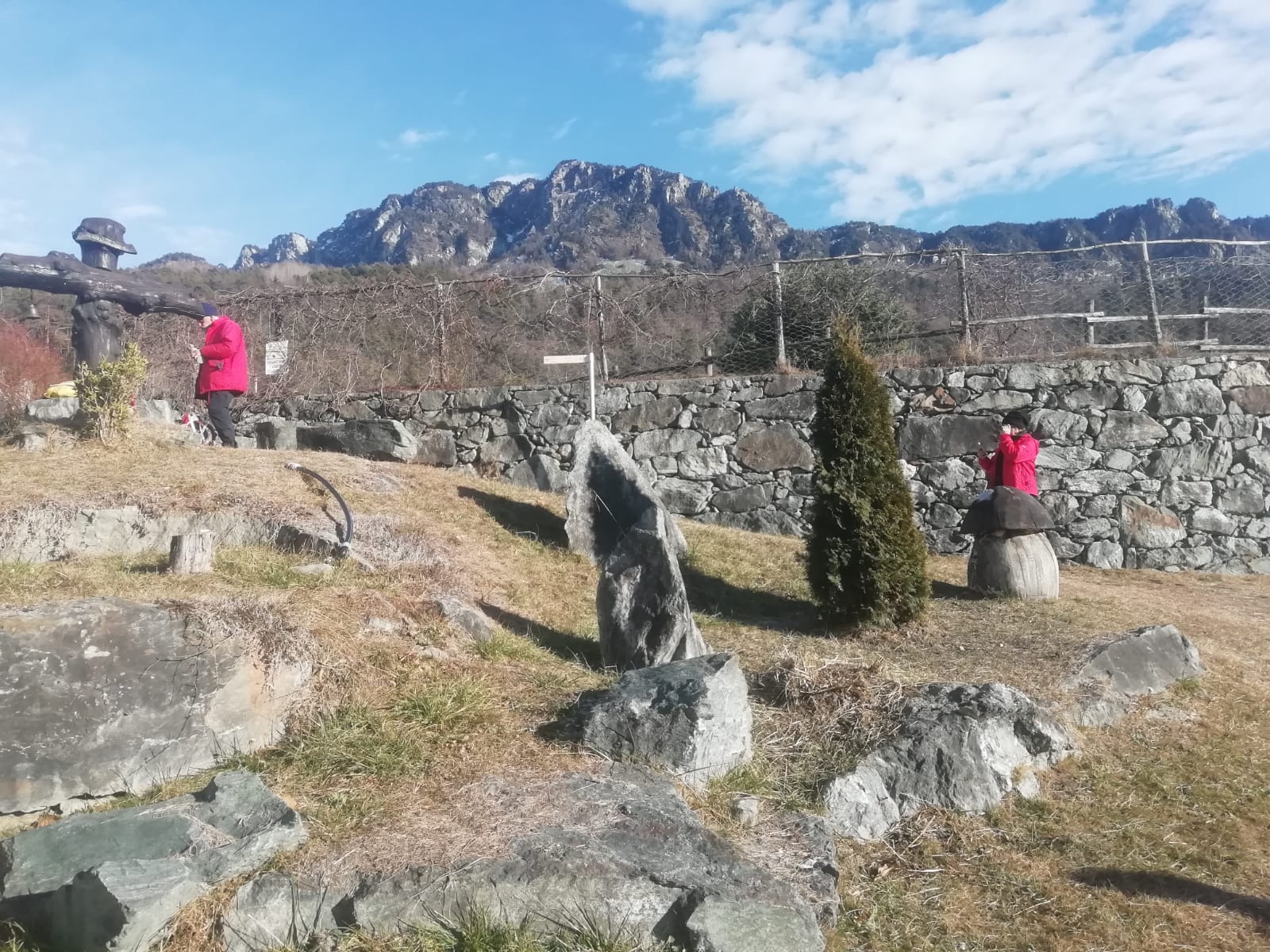 Lasciato il bosco, continuiamo a salire ignorando la possibile deviazione a destra (che porterebbe verso il Bosco delle Fate) e raggiungiamo una strettoia tra una grossa roccia e un muretto a secco. Percorriamo un paio di tornanti e, finalmente sbuchiamo sui pascoli bassi della piana d'Eresaz.