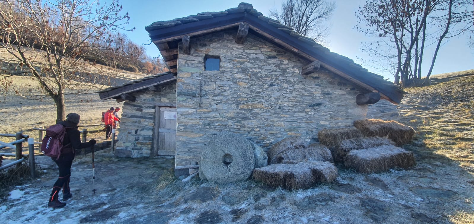 Ad ogni buon conto, dal mulino si deve salire fino alla strada asfaltata e la si deve attraversare per imboccare il nostro sentiero che, superato un piccolo pascolo, inizia a salire verso il bosco.