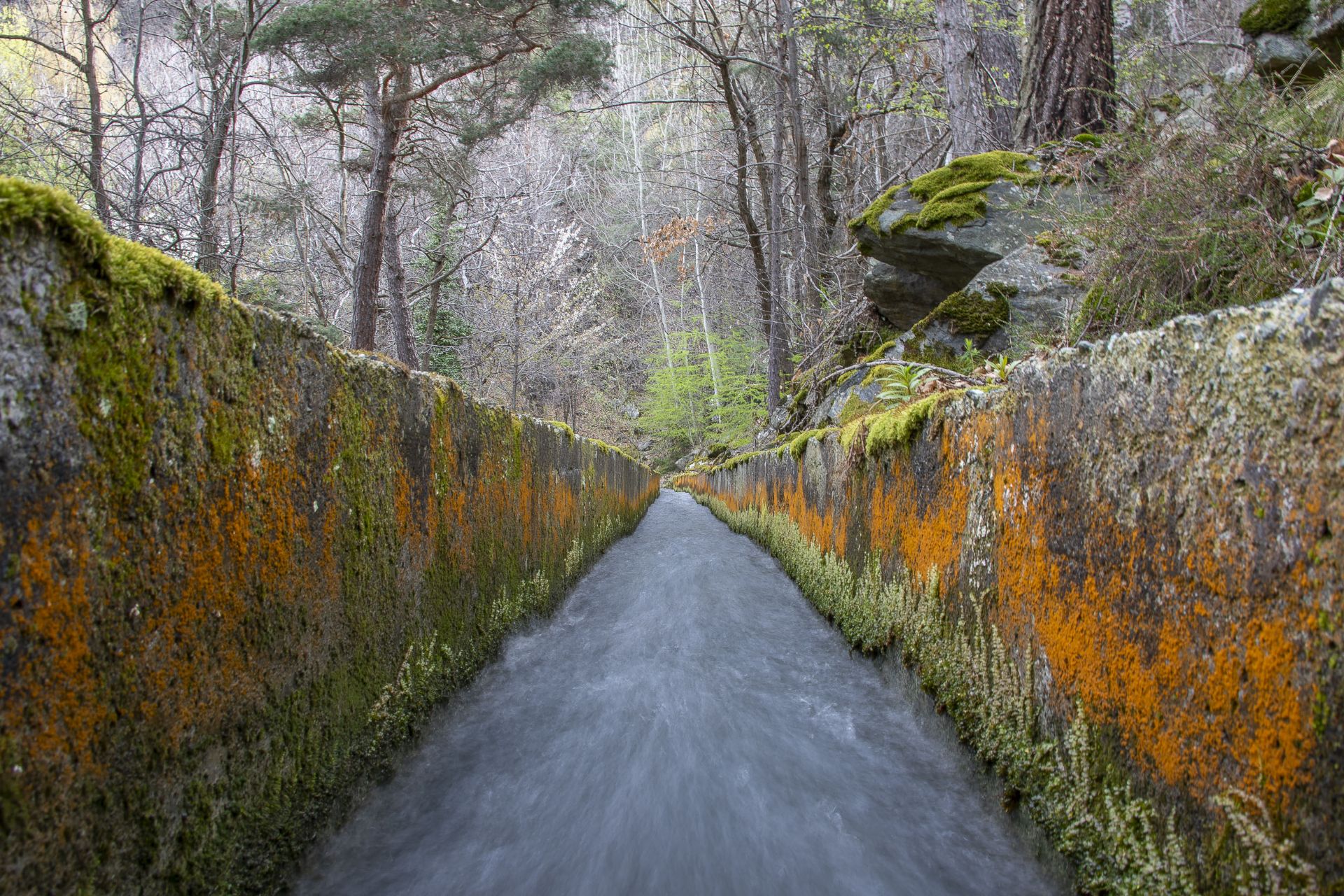 Ci si muove subito su un brevissimo tratto di asfalto in discesa e dopo 100 metri si sente forte il fluire dell’acqua del ru che proviene da sinistra e scende verso destra. Si prosegue su sterrato. Si procede in salita leggera, ma qualche tratto breve è più ripido. Si alternano tratti dove l’acqua è visibile e tratti intubati ma poco dopo il nostro sguardo è attratto a destra, verso il basso, dal bel paesino di Estaod e più in lontananza dal castello di Saint Germain posto sulla via Francigena. Segue un pannello che illustra i vantaggi agricoli dei ru.