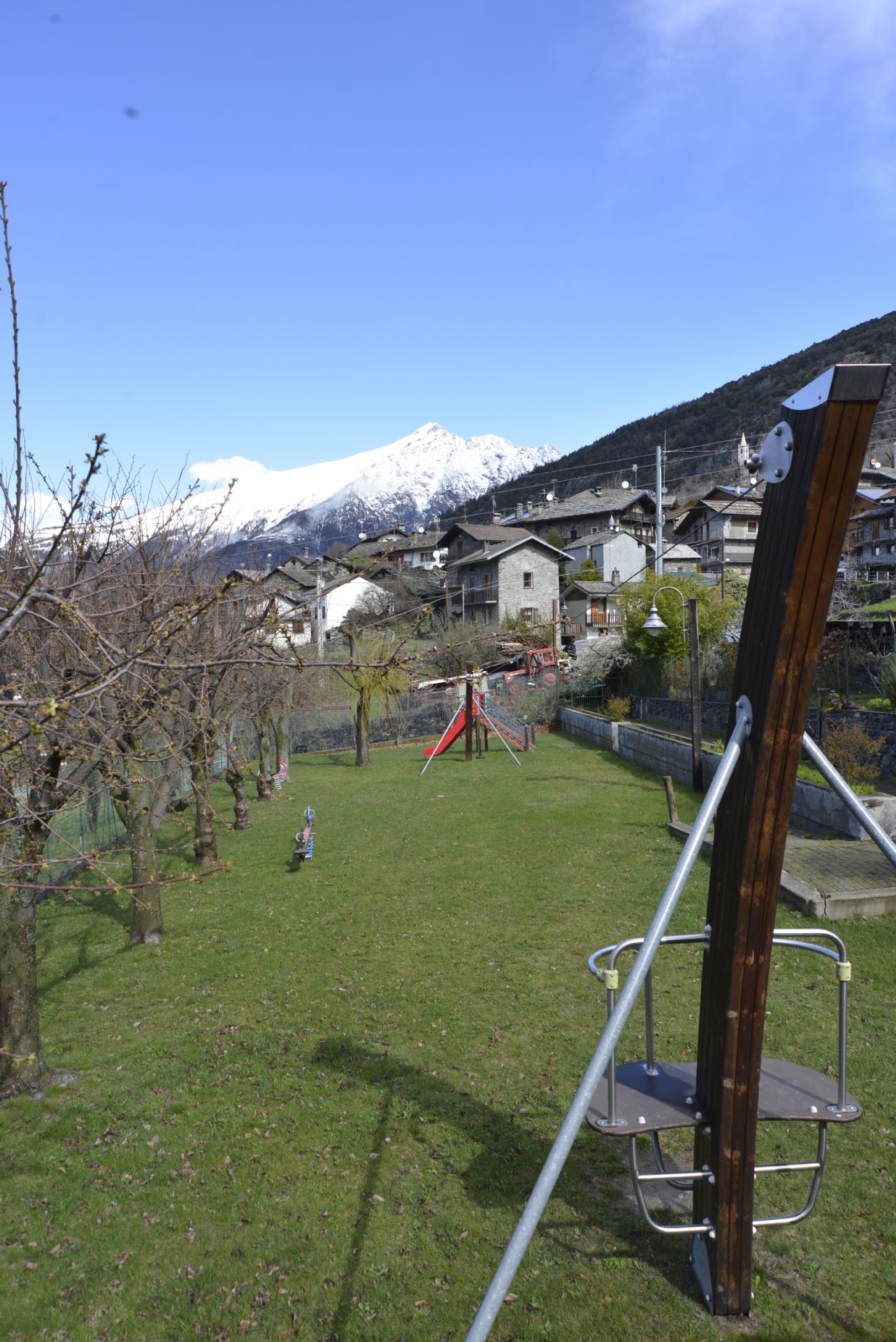 Appena prima dell'ingresso del vecchio villaggio e nel cuore del paese, c'è una piccola area giochi per i bambini dotata di una tirolese.